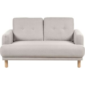 Upholstered Loveseat with Wooden Legs. This upholstered sofa is going to be a focal point of your living space. Crafted out of durable, high quality polyester fabric, in timeless off-white colour, the piece will draw attention with its clean-lined design, thickly padded seat and buttoned backrest cushion. Additionally, the whole construction is placed on a set of wooden legs, which will highlight the retro design of the piece and guarantee stability. The couch is also easy to clean, as its pillows feature zippers, so you can quickly remove covers and wash them. Details: Product Type: 2 Seater Sofa Style: Retro General Color: White, Brown Shade: Off-White Material Type: Fabric Main Material: Fabric Additional Material: Eucalyptus Wood Filling Material: Foam Material Composition: 100% Polyester Arm Style: Track Pattern: Solid Seat Construction: Sinuous Springs Seat Foam Density: 50 kg/m3 Seats Up To: 2 People Dimensions: Armrests Height: 60 cm Depth: 90 cm Seat Thickness: 20 cm Seat