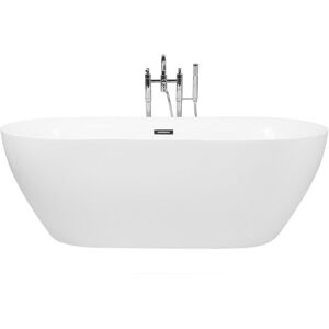 White Modern Tub. Designed for the ultimate bubble bath experience, this oval tub will fulfil your needs, blending an astonishing look with functionality. Featuring gorgeously rounded edges and a sleek silhouette, this tub will work wonders as a bathroom centrepiece, enriching your interior with glam and sophisticated touch. Made from reinforced acrylic with a glossy white finish, the bathtub is both easy to clean and durable. Details: Product Type: Freestanding Bathtub Style: Modern General Color: White, Silver Material Type: Acrylic Main Material: Acrylic Shape: Oval Finish: Gloss Capacity: 228 Dimensions: Width: 80 cm Inner Dimensions: 120x50x43 Length: 180 cm Height: 58 cm Weight: 50 kg Weight Capacity: 270 kg Offer Includes: 1 x Drainage Pipe, 1 x Bathtub, 1 x Overflow System, Not Included: Taps Key Features: Drainage System with Overflow Control, Durable and Shock-Resistant, Great Relaxation Spot, Modern Design, Resistant to Low and High Temperatures, Exceptionally Easy Care