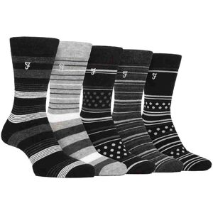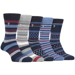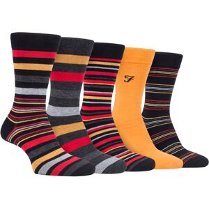 Farah 5 Pack Mens Bamboo Bright Socks: Who doesn't want to feel like they're walking on clouds? Well, with these Farah Bamboo socks, now you can! The 5 pack mens socks are made from Bamboo, meaning that they feel soft on your feet for that luxurious experience. Bamboo socks also help to regulate temperature so these socks will help you to feel warm in the Winter, and cool in the Summer. If your feet suffer from circulation issues, then these gentle grip socks will help to improve regular circulation. These socks are available in different striped and plain coloured patterns. This pack includes 5 pairs, 1 pair for every day of the working week! They are available in sizes 6-11 UK and are made from 69% Viscose from Bamboo, 28% Polyester, 2% Elastodiene, 1% Elastane. Hand washable. Extra Product Details: Mens Bamboo Socks Gentle Grip Striped and Coloured Patterns Bright Socks Improve Regular Circulation Hand-Linked Toe Seams 5 Pairs Bamboo Material