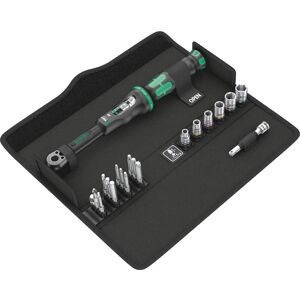 10-piece 1/4" torque wrench set in a robust textile box; torque wrench with slide-over mechanism. Once the set torque has been reached, the tool cannot be overtightened, so that excessive torque cannot be applied. Setting range of 2 to 12 Nm for controlled clockwise and counterclockwise torque operation. Easy setting and saving of the default value: The audible and tactile clicks on reaching the scale values facilitate the safe setting of the desired torque value. The Torque Lock function allows use as a standard ratchet without torque function. Thus also usable for applications with angles of rotation. Max. breaking torque of the ¼" square head as per DIN 3122. The return angle of only 5° allows the ratchet to be used even in confined spaces. Included are: Safe-Torque A 1 torque wrench, 1/4" square head, 2-12 Nm, 8 sockets with 1/4" drive and one short extension.Features and Benefits• Slip-over release mechanism - the set torque can never be overtightened• Torque Lock function: The torque function can be deactivated and the tool can then be used as a standard ratchet with high loosening moments and for applications with defined angles of rotation• For controlled clockwise and counterclockwise torque operation - tightening and loosening with or without torque• Easy setting and saving of the desired torque value with audible and tactile clicks when reaching the scale values• After the target torque has been reached, the release angle is only 30°Contents1x Safe-Torque A 1 Imperial Set 1, 1/4" square head drive, 2-12 Nm, 10 pieces; 1x Safe-Torque A 1 torque wrench with 1/4" square head drive, 2-12 Nm: 1/4"x2-12; 8x 8790 HMA Zyklop 1/4" socket: 3/16"x23.0, 7/32"x23.0, 1/4"x23.0, 9/32"x23.0, 5/16"x23.0, 3/8"x23.0, 7/16"x23.0, 1/2"x23.0; 1x 8794 SA Zyklop extension with free-turning sleeve, short, 1/4": 1/4"x75.0; 1x Hook and Loop Fastener Strip 240: 240.0x50.0
