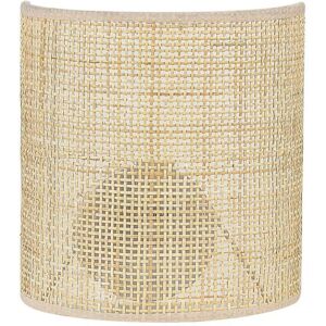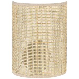 Woven Scalloped Wall Scone. A stylish retro-inspired wall lamp with a scallop shade, perfect for vintage, boho, or eclectic interiors. The handwoven rattan shade directs light downwards, making it a great choice for creating a cosy atmosphere in the bedroom or living room. Its distinctive charm is enhanced by the elegant gold arm, gently curved into an arch. A truly unique piece that brings warmth and character to any space. Details: Product Type: Wall Lamp Style: Boho General Color: Natural, Beige, Gold, White Material Type: Rattan Main Material: Rattan Additional Material: Iron Shade Material: Rattan Wattage: Max. 60 W Light Bulbs Required: 1 Voltage rating: 220-240 V (50 Hz) Dimensions: Cord Length: 120 cm Depth: 33 cm Width: 44 cm Height: 73 cm Weight: 3 kg Offer Includes: 1 x Wall Lamp, Not Included: Light Bulb Key Features: Works Splendidly as an Ambient Light, Retro Style, Eye-Catching Accent Piece, Perfect for Both a Bedroom and a Living Room, High Quality, Unique Handmade