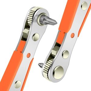 【Delicate Mechanism】- 36-tooth alloy steel reversible ratchet system, ensuring smooth ratcheting in both directions and precise adjustment; A simple push converts the clockwise and counterclockwise rotation of the screwdriver to quickly switch between tightening and loosening screws. 【Especially Suitable for Tight Spaces】- With a compact length of 4 inches and a depth of 1 inch, the mini ratchet wrench features a unique right-angle design that allows for smooth tightening or loosening of screws even in tight spaces. 【Easy to Use】- Simply turn the rotary wrench to adjust the burning direction; This pocket-sized short-reach mini drill driver features a magnetic clip in the hex bit holder, which helps to hold the inserted drill securely in place without falling off. 【Quality Material】- The right angle magnetic screwdriver is made of high quality steel material, durable, rust-proof and has a long service life. 【Wide Range of Applications】- The mini right angle ratchet screwdriver almost