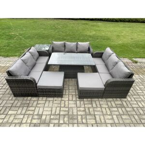 This wicker rattan lounge sofa Set can be used both indoors and Outdoor,with high quality PE rattan and durable galvanized steel construction for sturdiness and long lasting. Outdoor garden furniture can also be placed on the patio or balcony,The design of this rattan furniture is a perfect blend of country chic and modern minimalism, adding an elegant touch to your house. Set Dimensions: • 1 x Big footstool :65L x 65W x 34H cm • 2 x Fully Assembled small footstools:40L x 40w x 34H cm • 2 x Reclining Chair :74W * 67 D * 79 H cm • 2 x 3 Seater Sofa :177W x67D x79H cm • 1 x Rectangular Dining Table :110L x 70W x 70H cm Dark grey mixed rattan with dark grey fabric .Color may some difference due to light or monitor .we are unable to return the item due to color problem . The armchair are adjustable, you can adjust the inclination of the chair back from 90°-130° through the button . Items Comes Flat Packed And Easy Assemble,Sturdy Galvanized Steel Tube Metal Frames With Powder Coating To
