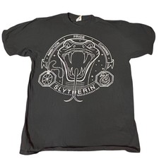 100% Cotton. Fabric: Midweight. Design: Printed. Neckline: Crew Neck, Lycra Ribbed. Sleeve-Type: Short-Sleeved. Single Needle Stitching, Supersoft. 100% Officially Licensed. 153gsm. Packaging: Swing Tag. Harry Potter Men's Slytherin Serpent Crest T-Shirt in Charcoal Size: Small