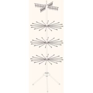 3-Tier Laundry Drying Umbrella: Hangs laundry (approximately 16 towels and 24 pairs of socks) weighing up to 33.1 lb (15 kg). The drying section can be rotated for easy drying and loading. 3-Leg Construction for Superior Stability: Even if you hang a lot of laundry, the 3 legs will support it, so you can rest assured that it won't wobble. Adjustable Height: The height of the umbrella can be adjusted according to the height of your clothes. Will not interfere with each other when drying Removable Clip Hanger: The top clip hanger (with 24 clips) is removable so you can remove it and hang it directly on the rod to dry, the bottom hanger has 16 clothes racks (foldable) and can hang 16 A clothes or pants. .