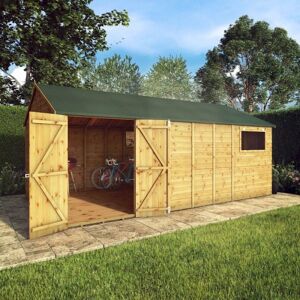 18 x 10 Feet Premium Shiplap Apex Workshop - Timber - L546.6 x W322.7 x H252.4 cm - BrownHigh-grade mineral felt and robust fixtures and fitting are all supplied as standard with this workshop. Alongside our detailed instructions, to ensure a simple and stress-free build. Our modular wooden workshops come with a 10 year Anti-rot guarantee. This ensures your garden building looks great and stands the test of time. Just make sure to treat your workshop annually with a wood preservative and a waterproof top coat. Then your guarantee will be good to go! Features: Enjoy our 10-Year Anti-Rot GuaranteeOpt for professional home installationCustomise your space with Modular DesignMove the doors and windows to your needsEasy Assembly with clear instructionsAll fixtures and fittings includedStrong 12mm shiplap claddingRobust 2" x 1" framingDurable tongue and groove roof and floorWeather proof Mineral Roofing Felt IncludedShatterproof Styrene Windows for safetyMade from sustainably sourced timberHandmade in the UK for superior qualityDimensions & WeightDimensions: L546.6 x W322.7 x H252.4 cmWeight: 530 kgNote: Please contact us for below mentioned optional extras services or add-ons:InstallationInstallation & PaintExtra Strength Floor Support Pack Mercia 18 x 10 Ft Premium Shiplap Apex Workshop - L546.6 x W322.7 x H252.4 cm in Brown