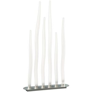 Estalacta Table Lamp 1 Light Indoor, Silver/Opal White Finish: Silver,Opal White IP Rating: IP20 Height: 56cm Diameter: 15cm Lamp Type: GU10 No. of Lamps: 1 Bulb Included: No Dimmable: Yes - Suitable Lamps & Dimmer Required Weight: 1.1kg Wattage (max): 5W Switched: Yes - Inline Switch