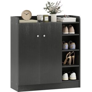Make it modern with this HOMCOM shoe storage cabinet. A wood-effect frame and white door panels create a Scandi design, which is modern and fresh - as well as extremely versatile. Formed of four flip drawers, making it easy to access: each section holds four shoes up to a UK size 9.5; this shoe storage unit is ideal for shared household use. Comes with anti-tipping straps to attach to a wall; it won't fall forwards. HOMCOM Shoe Storage Cabinet with 4 Flip Drawers for 16 Pairs of Shoes in Natural