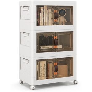 Each stackable storage bin has a large capacity, providing plenty of space for everyday use. Front doors, handles and magnets make accessing items never been easier. The storage box can also be removed and folded to be easily stored under the bed or sofa. Made of reliable PP material, these storage boxes are lightweight and durable. Moreover, they also equipped with 4 lockable wheels for effortless mobility. Versatile storage cabinet can be used as a clothing or toy organizer, shoe locker, snack storage cabinet, or even a tool cabinet. This modern floor storage box is easy to install and requires no tools, making it a great addition to enhance your home's style. Get started on giving your home a new look! Costway 3 Pack Stackable Storage Cabinet Folding Home Organizer Lockable Wheels 27 Gal in White