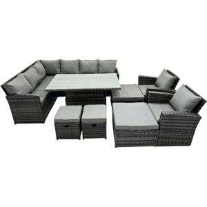 Built to last! This heavy-duty rattan sofa set features a rust-proof steel frame and all-weather PE wicker, designed to withstand sun, rain, and wind. A perfect, low-maintenance choice for outdoor relaxation. Set dimensions: •1 x 3 Seater sofa with double armrest: 162L x 67W x 79H cm(Fully Assembled) •1 x 3 Seater sofa with single armrest: 157L x 67W x 79H cm (Semi-Assembled) •1 x rising dining table: 140L x 80W x 68/48H cm (height up 68,down 48) •2 x Big Footstool :65L x 65W x 34H cm •2 x Small fully assembled footstools :40L x 40W x 34H cm •2 x Chair: 74W x 69D x 79H cm Dark Grey Mixed rattan with dark grey fabric .Color may vary due to light or monitor .we are unable to return the item due to this problem .Please consult before purchase if you have requirment on color saturation. Table Can Be Used Both For Coffee Or Dining Table,Great Price Compared With Other Online Or Offline Store For Rising Table Set Items Comes Flat Packed And Easy to Assemble,Sturdy Galvanized Steel Tube