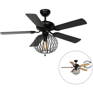 QAZQA Ceiling Fan Black with Wood Print 132cm with Remote Control - Cool Video Keep a cool head with this beautiful Cool 52 fan! Enjoy the fresh breeze in your home or office. The sleek design will be a very welcome addition to your interior. A multifunctional ceiling fan that you can enjoy all year round! The blades of the fan have a stylish colour on both sides: black or a wood finish. You choose which side makes the finishing touch! The length of a single blade is 53 cm. Due to the width of 130 centimetres, this fan has an enormous range, which ensures good air circulation. The mounting plate has a diameter of 13 cm. This ceiling fan has different decibel levels per position: the highest position: 44.7 dB, middle position: 43 dB, and the lowest position: 40 dB. A very quiet and pleasant ceiling fan! This fan comes with a remote control, so you can operate it from your lazy chair or bed. This remote control does not yet include 2x AA batteries. In order to make the Cool 52 shine,