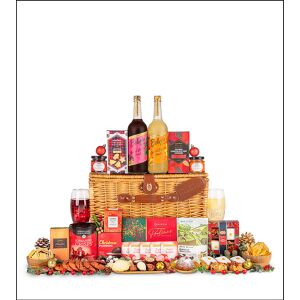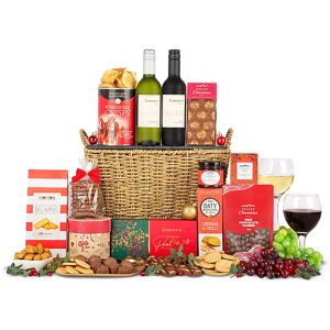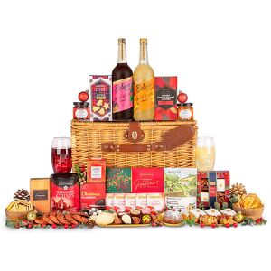 Introducing our exquisite Ultimate Christmas Celebration Basket, a luxurious assortment of gourmet delights and indulgent treats to elevate your festive season. Nestled in a large handmade luxury wicker basket, this hamper is curated to create an unforgettable holiday experience. Raise a toast with the finest selection of wines and champagnes, including the renowned Baron De Villeboerg Champagne Brut 75cl, the rich and velvety Dow's Fine Tawny Port 75cl, the crisp and delightful Borgo Molino Prosecco Extra Dry Tresviso 75cl, the smooth and sophisticated Bouchard Aine Fils Chardonnay 75cl, and the aromatic Bouchard Aine Fils Pinot Noir 75cl. Each sip will transport you to a world of refined taste and celebration. Contains: Baron De Villeboerg Brut 75cl Dow's Fine Tawny Borgo Molino Prosecco Extra Dry 75cl Chateau Barrail Laussac 75cl Bouchard A&F VDF Chardonnay 75cl Bouchard A&F VDF Pinot 75cl 1.2kg Mini Alderton Ham Pork Liver Pate with Cognac O.H Oak Smoked Salmon 100g Mouse House Black Pepper Cheese 100g Mouse House Tomato, Basil & Garlic Cheese 100g Mouse House Vintage Cheese 100g Song Thrush Breakfast Teas Miss American Pie Key Lime Pie Biscuits 75G Hot Chocolate Pouch 113g Figgy Christmas Pudding 275g Chocovia Pralines 100g Mrs Darlington's Christmas Chutney 312g Mrs Darlington's Cranberry Sauce with Port 200g Filberts Roasted Nuts and Plump Fruits Cranberry, Orange and Milk Chocolate Biscuits C&B Crispy Wafer Rolls with Cocoa Cream Filling Yorkshire Sweet Cured Ham & Pickle Crisps 95g Yorkshire Tomato, Basil & Mozzarella Crisps 95g Classic Mince Pies Christmas Shortbread Shapes Christmas Chocolate Yule Log Cake Chocolate Chip Cookies Three Chocolate Domes Gift Box (Honeycomb, Raspberry, Eton Mess) Laundry Wicker Basket 48x36x 41cm