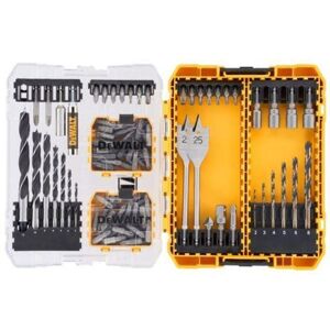 Features DEWALT 100 Piece accessories set in a medium toughcase+ set Contains Black and Gold drilling Key wood drilling sizes Mixed screwdriver sets Part of the Toughcase+ system Specification Pieces - 100 Standard Equipment 1x DeWALT DT70784-QZ 100 Year Anniversary 100 Piece Accessory Set