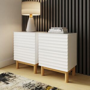 Upgrade your bedroom with the Taeshia Bedside Table Set, a perfect blend of modern style and practicality. This pair of nightstands features a sleek, textured front with a subtle ribbed pattern, adding a touch of sophistication to your space. The clean white finish is complemented by natural wooden legs, making them a seamless fit for contemporary, minimalist, or Scandinavian-inspired interiors. Each table comes with two spacious drawers, providing ample storage to keep your essentials neatly organised and your room clutter-free. The handle-free design creates a smooth, modern look while ensuring easy access to your belongings. 17 Stories