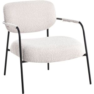 Occasional Armchair with Metal Frame. This upholstered chair is a stylish, modern addition to your living area, bedroom, or even a home office. Designed with a deep tub seat with foam padding, it offers a surprising level of comfort, whether you're relaxing with a book or catching up on emails. The same-height back and armrests create a cocooning effect, giving it a sleek silhouette while also providing balanced support. Finished with a visible metal frame on the back, it brings just the right hint of industrial modern look, making it a universal piece that suits both contemporary and transitional interiors. Details: Product Type: Armchair Style: Scandinavian General Color: Beige, Black Frame Colour: Black Shade: Light Beige Material Type: Fabric Main Material: Fabric Additional Material: Steel Filling Material: Foam Legs material: Metal Seat Material: Fabric Material Composition: 100% Polyester Arm Style: Track Armrests: Yes Leg Caps/ Pads: Yes Pattern: Solid Reclining: No Seat