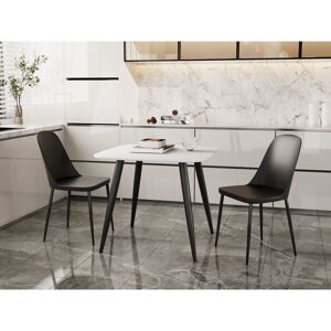 See the below information for this Aspen white square table & 4 grey duo chair Set, 1 x ASTB2WH + 2 x ASCH22-GR (Pair): Dining Table Our compact square dining table features soft rounded corners and tapered edge design with a matt painted white finish. each leg is precision manufactured from tapered tubular steel with a black matt paint and built in adjusters for uneven floors. White painted finish Angled metal legs with adjustable feet. Soft curved table edges Black stove painted leg finish Easy to assemble Material: MDF/Metal Dimension: L80 x W80 x H75 cm Weight: 18 kg Dining Chair Our pair of duo dining chairs feature a wraparound seating style for your comfort along with an hardwearing easy to clean finish. manufactured from light grey injection moulded plastic with black stove painted tapered metal legs on a fully welded under frame for strength and stability. Plastic moulded chair seat Wraparound deep moulded seat Fully welded steel leg and under frame Black stove painted leg