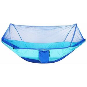 Product Description 1.HIGH-QUALITY MATERIALS: Double camping hammock breathable, lightweight, durable and wear-resistant. Soft to the touch and good for your health. Durable, portable and easy to clean and dry quickly after getting wet. 2.Mosquito Net: This hammock is the one you can actually use for sleeping outdoors. With 2 in 1 mosquito net and hammock, it would protect you from those creepy caterpillars, which means a much safer outdoor trip. all nodes. You can just attach them to anything sturdy like trees and it's also quick to unwind in just a minute. 4. LIGHT WEIGHT AND PORTABLE: You can take it anywhere it can be stored in its small bag. Ideal for solo adventures, camping, hiking, backpacking, travel, emergencies. 5.FRIENDLY REMINDER: You can hang it on the balcony, yard, garden, particularly light. Please do not use it more than 50cm from the ground. Under 15, please use it with an adult.