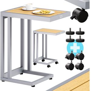 With the side table from CASARIA you can give your living room or garden a new dimension. Its weatherproof materials make it the perfect companion for the garden lounge or next to the sofa in the living room. With its timeless design, it also cuts a fine figure as a bedside table for breakfast in bed or as a laptop table. The C-shaped steel frame can be easily pushed under the sofa or bed. 4 wheels , two of which can be locked with brakes, make pushing it easy and comfortable. If necessary, the wheels can be replaced with 4 height-adjustable feet. The table top made of WPC - a weatherproof Wood-Plastic Composite mixture - with its beautiful grain forms a perfect contrast to the purist-looking steel frame. The material is robust and suitable for outdoor use , and the table can hold up to 25 kg. Product Details: Suitable for indoor and outdoor use Weatherproof materials with a long service life Nice as a side table for the garden lounge or sofa High load capacity up to 25kg Modern
