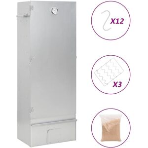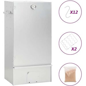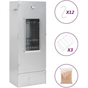 With this multi-functional oven smoker, you can smoke meat, fish, as well as sausages. Make a feast and enjoy outdoor get-together with your family! This smokehouse is equipped with a thermometer to keep you informed about the chamber temperature. Through the window, you can keep an eye on the food inside. The 83 cm tall smoking oven provides plenty of space for smoking the meat. The outdoor grill is made of galvanised steel and suitable for outdoor use. Thanks to the zinc plating on the rack, fire bowl and ash tray, the BBQ is rust resistant. Both the drawer and fire bowl are equipped with a handle. Additionally, 1kg wood chips and 12 S-shaped hooks are included in delivery. Do not use the barbecue in a confined and/or habitable space e.g. houses, tents, caravans, motor homes, boats. Danger of carbon monoxide poisoning fatality. Material: Galvanised steel Dimensions: 44.5 x 29 x 83 cm (W x D x H) Zinc-plated fire bowl, rack and ash box With long and short glass slide plates Drawer