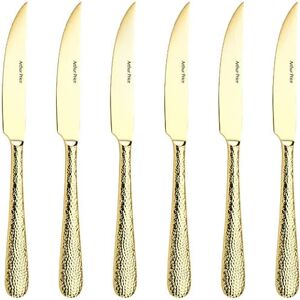 Featuring a harmonious blend of timeless tradition and contemporary flair, the Arthur Price Avalon Set of 6 Steak Knives is ideal for both daily dining and celebratory gatherings. Meticulously crafted from premium 18/10 stainless steel, this set of 6 steak knives boasts a distinctive hammered texture that not only enhances its visual appeal but also catches the light, elevating any dining experience. This set is presented in gift box packaging which is fully recyclable. While dishwasher safe for convenience, hand washing is advised to preserve its brilliance. Plus, with a generous 50 year manufacturer's guarantee, you can trust in the enduring quality of the Arthur Price Avalon Set of 6 Steak Knives. Knives are not for sale to persons under the age of 18. - all knives and bladed products are delivered by Age Verified Delivery (AVD). The carrier may request proof of age in order to deliver your parcel. If proof of age is not available, or the recipient is underage, the carrier will refuse to deliver.
