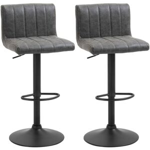 For cool eat-in kitchens and dining rooms, these two HOMCOM bar stools will do the trick. The weathered PU leather upholstery adds instant style, whilst the steel frame ensures full support whilst seated. Seats feature a firm back for support, with padding all-over for comfort. The adjustable height seamlessly fits any counter or bar table, while the 360° swivel offers an unrestricted view. Cheers to a stylish seating experience! Specifications: ● Color: Grey ● Material: PU Leather, Steel ● Overall Dimensions: 45W x 48D x 88-109Hcm ● Seat Dimension: 42W x 36D x 64-84Hcm ● Base Dimension: Φ41cm ● Weight Capacity: 120kg ● Item Label: 835-501CG Features: ● Set of two, suitable for home dining areas ● Adjustable height to sit at a comfortable level ● Metal frame for full seat support, with lower bar to rest feet ● Armless seat for freedom when seated. Firm back for support and padded for comfort ● Protective foot pad on base ● Maximum load 120kg, assembly required