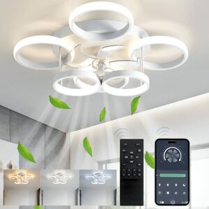 Smart & Modern Design —— Ceiling fan with light combined with a fan and a lighting device. It has wireless and APP control, dimming, color temperature adjustment, brightness adjustment, 2-hours timing function, 6-speed wind speed, fan forward and reverse function. Stepless Dimming —— The ceiling fan with light using intelligent LED technology, the LED ceiling fan can steplessly adjust the color temperature (3000K-6000K) and brightness (0%-100%). You can choose your favorite color temperature, and the new ceiling fans with built-in lamp are more energy efficient, provide a soft, glare-free light source and protect the eyes. 6 Speed Wind Speed & Reversible Function —— 6 speed adjustable (1-2 levels of gentle wind, 3-4 levels of natural wind, 5-6 levels of strong wind). The ceiling fan has a reversible function that changes the air flow from bottom to top, drawing air into the room in summer, making indoor air cooler and more circulating, and promoting heat circulation in winter. Timing
