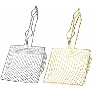 Specification: Material: Metal Color: gold, silver Size: 14*32.5cm Step size: 0.7cm Weight: 400g Quantity : 2 pieces Features: The 0.7 cm slots are wide enough and very effective in picking up clumps and sifting clean litter, works with most bulky and sticky cat litter. The non-stick coating makes the shovel sticky. quick and easy to clean cat litter to clean. All you have to do is wipe it with a damp cloth or rinse it off. the water. And your shovel? litter in just seconds is ready to go. be reused. There are holes on the handle, which can be hung on the hook for convenient storage. You can finally do this job much more efficiently with our excavator. cat litter. Package includes: 1 * teaspoon; gold metal cat litter 1 * Shovel silver metal cat litter Warm Notice: 1. Please allow a little size error due to manual measurement. 2. Due to lighting effects and monitor's brightness/contrast settings etc, the color of the photo and the actual item could be slightly different.