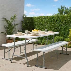 Harbour Housewares versatile indoor and outdoor 6ft folding bench is ideal for camping, picnics and dinner parties, making it the perfect solution for extra seating at any event seating up to 4 people. Its strong steel frame and hard surface makes it extremely durable and easy to clean, the fold in half function makes it perfect to store away when not in use and its carry handle makes it even easier to move around. This bench would be perfectly paired with the Harbour Housewares folding tables. PLEASE NOTE: The maximum weight capacity of the item is 220kg - 110kg per side/leaf. Harbour Housewares