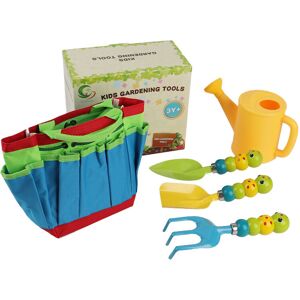 Kids Gardening Tool Set: As the picture shows,5pcs. High Quality Material: Kids garden toy set made of sturdy wood, harmless plastic, metal and Oxford cloth, which are safe and sturdy without sharp edges. The canvas bag is easy to carry and has multiple pockets for seeds and tools. Thick plastic watering cans are convenient and easy for children to use. Kids Garden Toys: Garden bag with all kinds of kids play tools, great beginner kit for kids who want to help in the garden or flower beds and learn more about nature and plants. Suitable for Kids: The kids garden tool set is colorful, small and designed according to the proportion of children. Children can choose the right tools for different planting needs. With this garden tool set, kids can have fun planting the garden, tilling the soil, watering and maintaining the soil.