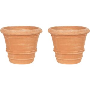 Set of 2 terracotta outdoor jars. These vases are the perfect addition to both indoor and outdoor spaces. Entirely handmade in Italy, they combine craftsmanship and design, enhanced by refined decoration. The terracotta used is of the highest quality, making the product resistant and durable, making it perfectly suited to all weather conditions and seasons, from the coldest to the warmest. Its rustic style fits perfectly in Tuscan, classic, or country chic homes, adding warmth and character to any space. Whether you're decorating your garden, porch, balcony, living room, kitchen, or dining room, these handcrafted vases fit seamlessly into any decor style. By choosing this handcrafted vase, you'll receive a superior quality product that will bring an authentic and unique touch to your space. It can also be used as a decorative vase, an outdoor planter, or a decorative accessory for porches and entryways. This item has also been copied and produced in resin, metal, and plastic, but with