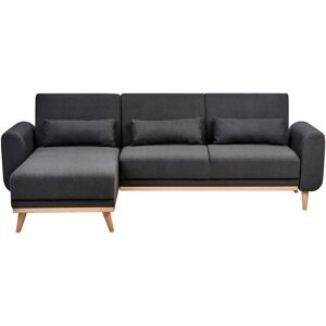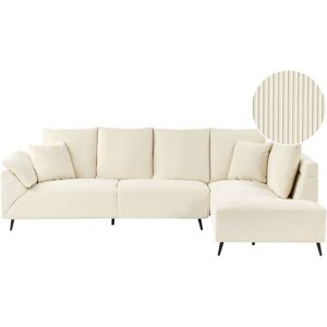 Jumbo Cord Corner Sofa with Pillowed Backrest. Fall in love with this stylish corduroy sofa. Upholstered in beautifully textured fabric, it offers the perfect blend of softness and durability. Its striking presence naturally draws attention, enhancing any modern living space with timeless elegance. Designed for both comfort and style, it features eight cushions in two sizes and a generously sized seating area, complete with a left-hand chaise for ultimate relaxation. Supported by sleek metal legs, this spacious corner sofa is perfect for hosting friends. Details: Product Type: Corner Sofa Style: Retro General Color: Grey, Black Shade: Light Grey Material Type: Fabric Main Material: Corduroy Additional Material: Eucalyptus Wood Filling Material: Foam Material Composition: 100% Polyester Shape: L-Shaped Arm Style: Track Orientation: Left Hand Pattern: Solid Seat Construction: Elastic Belt Seat Foam Density: 20 kg/m3 Seats Up To: 4 People Dimensions: Armrests Height: 55 cm Depth: 180 cm