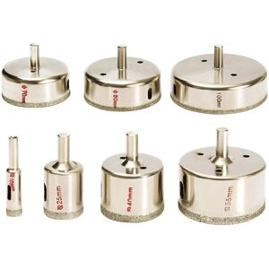 Excellent Performance - Drill bits have a unique hollow design for clean drilling and fast chip removal. They can help you open a perfect hole without burrs and wobble. The tool is resistant to small incisions and has a high punching speed, which improves work efficiency and saves time and effort. Economy Set - This drilling tool set contains a total of 7 diamond hole saws. Length: 5 cm. Diameter: 10, 25, 40, 55, 70, 80, 100 mm. Tools of different sizes are available to meet your different drilling needs. They are ideal for working on materials such as glass. Application: They only need to be installed on a regular electric drill to work. When working, you should apply cooling water to your surfaces, starting at a 45 degree angle and then drilling vertically. Your force should be gentle, especially when drilling starts and drilling is completed. Multiple uses: Opening tools are ideal for fragile hard materials such as glass, tiles, marble and granite. They can be used for daily glass