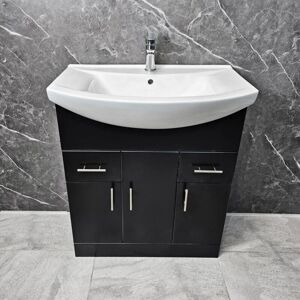 Black Vanity Unit 750mm with Ceramic Basin Brushed Brass Handles Bathroom Sink Hydros Mediterranean 750mm matt black finish basin unit Modern styling Rigid built - ready assembled Includes 1 tap hole high quality ceramic basin Soft close doors x3 x2 drawers Ideal for creating a bit of extra bathroom storage With x5 brushed brass finish bar handles Sizes approx: Width: 750mm Depth: 500mm Height: 880mm Muro Brushed Brass Finish Basin Mono Tap Can be Added at Extra Cost Muo Basin mono mixer tap Easy to use single lever control Manufactured from brass In a brushed brass finish WRAS approved Includes flexible tails Requires min 0.2 bar – 5.0 bar operating pressure High quality tap Tap option includes a matching click clack basin waste