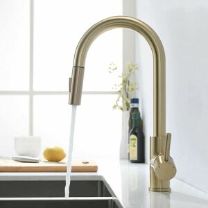 This kitchen faucet has a standard 3/8 inch port, very durable. All accessories are made from high quality materials. It is very good for saving water and protecting the environment. The sink faucet with double spray heads, the water flows very evenly, and you can easily get the dirt on dishes. Kitchen faucet with ceramic cartridge tested 1,000,000 times, long life, excellent sealing, very easy to install, even for the new hand, high quality workmanship. Product Description The New Design and Hot Sales in USA: Brushed Gold Kitchen Faucet. 【Features】 Protect : the new brushed gold kitchen faucet design to protect your family from cold water and hot water, especially for the elderly and children. 【Specification】 L thickness of workbench should be less than 5cm. Hose connection length: 60cm. Tap & Pull-out spray - 360° swivel. Dual-function spray head for spray and jet extraction. Easy-Clean nozzles prevent water build-up hard. < p>Excellent surface resistant to corrosion and rust.