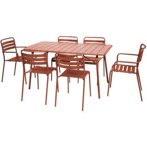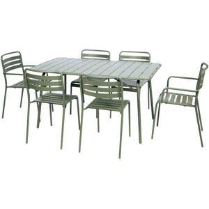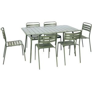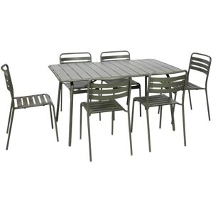 Advantage of the products: Simple rainwater drainage Rust treatment Folding table Stackable chairs A timeless garden table This 6-seater metal table is perfect for your garden or balcony terrace. Its timeless design will blend and adapt to any style of outdoor décor. The Amelia table is ideal for enjoying convivial moments with your loved ones. Enjoy the fresh air outside with this beautiful table! Sturdy and rust-resistant The Amelia steel garden table is perfect for those who want a durable and attractive table. It features a rust treatment, which means it can be used outdoors without fear of moisture or rain damaging it. The table also has charming slats and rounded edges. Finally, rainwater can easily escape through the table's slits. For practicality, the chairs are stackable, and the table folds to save space when not in use. Timelessly designed chairs The Amelia chairs will add a real plus to your garden décor, with their beautiful steel structure and timeless design. The