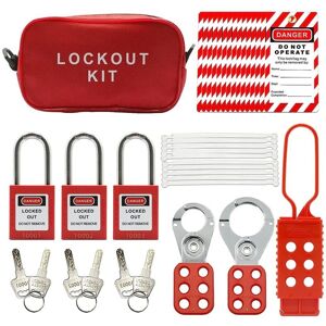 Lockout Tagout Kit, Nylon Ties, Safety Padlocks with Number,Group Lockout Hasps, Universal Kit with Red Pocket Bag. Locking and tagging kit: It is an essential accessory for electrical equipment, industrial work, etc., to prevent electrical accidents and the safety of workers. Buckle lock: one Hook-and-loop fastener lock and two steel buckle locks. Steel buckle lock: rust resistant, scratch resistant, beautiful and practical, with plasticized handle and good insulation performance. Hook-and-loop fastener lock: Made of nylon, it can be bent at , soft and tough. Can accommodate 6 people to lock simultaneously. Security padlock: It meets the requirements of equipment locking and security management, with one lock paired with two keys. Contains 3 safety padlocks, non-conductive thermoplastic, and key fixed brass lock . The key cannot be removed when the padlock is opened. Locking device package: 15x locking label, 2x locking buckle, 1x nylon buckle, 3x safety padlock, 20x cable tie, 1x