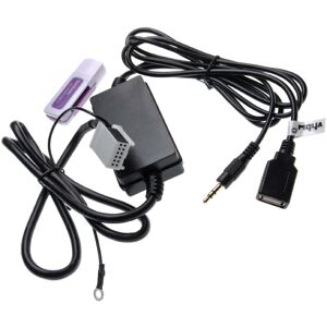 vhbw - the clever way ENABLECompatible AUX Line In adapter cable for connecting your MP3 player and smartphone with dock socket to your car audio system This adapter enables you to connect your smartphone, MP3 player, tablet etc. to your car radio and listen to music through the car speakers. The AUX line-in input of your radio is unlocked via the interface and allows the playback of external audio sources. Caution - a different adapter is required for some models compatible with Kia from 2011. Please compare exactly with the required accessory number. Suitable for all radios that allow USB OTG via the AUX interface. CONTENT OF DELIVERY: - 1x AUX line-in adapter cable TECHNICAL DETAILS: - Connections: 1x 3.5 mm audio jack, 1x USB plug, 1x dock connector - Cable length: 30 cm - Colour: black COMPATIBLE WITH Apple iPhone with 30-pin connection REPLACEMENT FOR 96125-1H500, 9999Z-01160 vhbw - High-quality replacement parts and accessories to prolong the service-life of your electronic