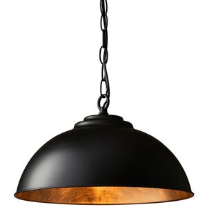 This pendant has a matt black finish, and a shimmering gold leaf inner for a touch of opulence. suitable for use with LED lamps, dimmable and the drop is adjustable at time of fitting. Other colour options available Netlighting Colman 1 Light Dome Ceiling Pendant Matt Black Gold Leaf E27