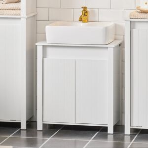 Transform your bathroom with the under sink storage cabinet, cleverly designed with a pre-cut U-shape slot to seamlessly accommodate wall-mounted hose outlet basin. This charming under sink cabinet features an open shelf and a versatile 2-tier cabinet with adjustable shelving, all in a sleek white finish. Suitable for organising essentials and bringing a touch of style to your space.- 15 x 20 cm U-shape slot matches wall-mounted hose outlet type sinks; - Open shelf and two-tier cabinet for lots of storage; - Five-level adjustable shelf caters to varied item heights; - Cream finish with arched recessed panels and bar handles enhance bathroom aesthetics; - Melamine faced particleboard resists wear and tear; - Elevated legs aid in moisture prevention; - Magnetic doors ensure secure closure; - Assembly required;- Colour: Cream White; - Material: Particleboard; - Overall Dimension: 60W x 30D x 63H cm; - "U" Cut-Out Size: 15W x 20D cm; - Suitable Basin Size: ≤50W x 28D cm; - Open Shelf Size: 57W x 28D x 10H cm; - Cabinet Inner Size: 57W x 28D x 38H cm; - Leg Height: 9.9 cm; - Weight Capacity: 20 kg (overall), 5 kg (shelf); - Suitable Basin Type: Wall-mounted hose outlet type basin; - Item Label: 834-730V00CW; 17 Stories
