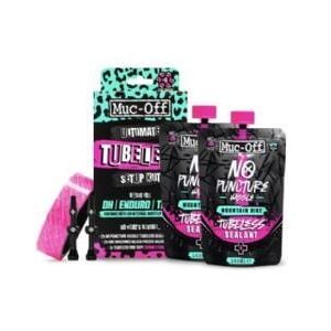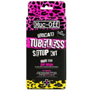 The Muc-Off Ultimate Tubeless Kit contains everything needed to get a tubeless-ready wheelset set up and ready to roll. Each Kit contains a Muc-Off Tubeless Rim Tape, Seal Patches, 2 CNC-machined black tubeless Valves and 2 pouches of No Puncture Hassle Tubeless Sealant.Key Features: Road/gravel/CX with shallow rims (44mm tubeless valves and 21x10mm Rim Tape)Road/gravel/CX with deep rims (60mm tubeless valves and 21x10mm Rim Tape)XC (44m tubeless valves and 25x10mm Rim Tape) DH/Enduro (44m tubeless valves and 30x10mm Rim Tape) DH Wide (44m tubeless valves and 35x10mm Rim Tape)Image for illustration purposes only