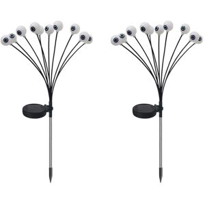 [Scary Halloween Decorations Lights Swaying By Wind] These eyeball solar Halloween pathway lights sway and dance when the wind blows, lighting effect, create frightful and spooky atmosphere to Halloween outdoor decorations. [2 Packs 20 LED Halloween Lights Stakes] 2 packs solar Halloween decorations eyeball lights, each set with 10 bloodshot , realistic and terrifying, built-in bright eerie lights, give spooky glow, add mysterious and scary touch to Halloween decor. [Solar Powered, Auto On/Off] Solar charge, updated large solar panel, faster charge and support long working time, it can work for 8-10 hours after full charge. Automatically recharge during the day, and light up at dark. [2 Modes, Blinking Eyeball] These have a great feature - blinking! Easy to choose your favorite modes(Steady or Blinking), add spooky Halloween atmosphere and a terrifying mood, perfect for dark corners around your house to spook your unsuspecting guests! [IP65 Waterproof] Solar powered with IP65