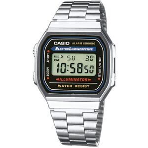 Collection:CASIO Retro Vintage.TARGET:Unisex.Casual.Adult.MOVEMENT & FEATURES:CASIO.Quartz.Digital.Day & Date.Stopwatch, Alarm, Timer, Light.CASE:Resin.Silver grey.Thickness 10mm.Diameter 34mm.BAND/BRACELET:Stainless Steel.Silver grey.DIAL:Black.LCD.