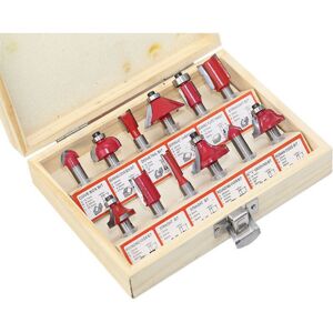 12-Piece 8mm TCT Router Bit Set 8mm Tungsten Carbide Cutting Edges Sturdy Hardened Steel Shanks Professional Woodworking Tools: Perfect for edging, trimming, grooving, woodworkers, and hobbyists of all experience levels. Industrial Grade Router Bits - Premium C3 Micro-Grain Carbide Blades with Teflon Coating Resists Build-Up and Heat - All in a Sturdy Aluminum Storage Case Anti-Kickback Design: Solid Hardened Steel Bodies with Anti-Kickback Design, Compatible with Bosch, Hilti, Milwaukee, Makita, Dewalt, and Porter-Cable Routers Contents: This set includes straight, round, taper, chamfer (45-degree), flush trim, and dovetail, V-groove, and Roman molding router bits. 8mm router bit set with tungsten carbide tips. Contains a variety of bit types for use in many different projects. Solid body with anti-kickback system. Most bits have two blades and are precision ground to stay sharp. Build-up and heat-resistant Teflon coating for maximum durability. The tough, heat-treated coating
