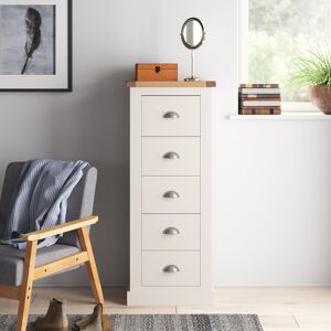 Adding a touch of farmhouse coziness to any room, this chest of drawers is as versatile as it is charming. It would work well as storage space for clothing, linen, media, documents, games, electronics, and more. The gentle two-tone color palette is easy to mix and match with your existing décor and it is built sturdily from solid wood to last you through the years. Brambly Cottage Finish: Off White