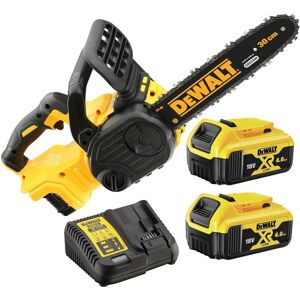 This Cordless Chainsaw by DeWalt has been manufactured with a Brushless Motor for increased run-time and power making it ideal for everyday use on the job site. The DCM565 features a lightweight and compact build design, suitable for one-handed cuts with a 7.68 m/s chain speed allowing tasks to be completed in a safe and controlled manner. Because the speed is just under 8 metres per second you don't need a certificate to buy this machine. Features Lightweight and compact (3.6kg), ideal for one-handed cuts 30cm Oregon bar cuts almost twice its length (that's a half meter diameter log) 7.68 m/s chain speed allows completion of tasks in a controlled manner Chain brake stops in less than 1 second for added safety Variable speed trigger, no need to pull start, single handed activation and improved control Secondary aux-handle for increased balance and control Auto oiling reduces maintenance Standard Equipment Chainsaw 30cm Oregon Chain 2 x 4.0ah Batteries Charger