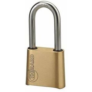 use: Outdoor - type: 50 - make: Thirard - designation: 51 x 60 x Ø 8 mm. - handle-material: Stainless steel. color-of-body: Brass-plated security-level: Sûreté reference-fabricant: 090804 - type-of-lock: Combination - width-of-body-(in-mm): 51 - height-of-body-(in-mm): 42 body-thickness-(in-mm) : 25 - shackle-diameter-(in-mm) : 8 shackle-height-(in-mm) 60 shackle-width-(in-mm) : 26 - body-material : Brass shackle-adjustable : No
