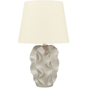 Ceramic Living Room Lamp. Add a very glamorous and eclectic piece to your home with this modern, ambient lamp. It draws attention with its ceramic, textured base in light gold colour, which in combination with a cream top creates a beautiful and functional decoration that fits into contemporary as well as more traditional interiors. Thanks to its compact size the lamp can be placed even on smaller tables, and the warm light it emits brings a cosy feeling to your living room or bedroom. Details: Product Type: Table Lamps Style: Modern General Color: Gold, Beige Shade: Off-White Material Type: Fabric Main Material: Ceramic Additional Material: Fabric Base Material: Ceramic Shade Material: Fabric Material Composition: 100% Polyester Wattage: Max. 40 W IP Protection Code: IP 20 Light Bulbs Required: 1 Voltage rating: 230 V (50 Hz) Dimensions: Base Dimensions: 9x9 Cord Length: 140 cm Depth: 28 cm Width: 28 cm Height: 46 cm Weight: 2 kg Offer Includes: 1 x Table Lamp, Not Included: Light