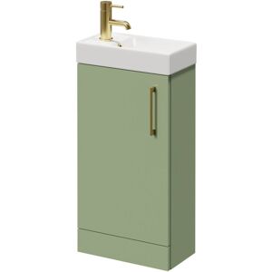 Model Number: WDB76703 Transform your bathroom with the Napoli Compact Olive Green 400mm Floor Standing Vanity Unit. This stunning piece combines modern aesthetics with functional design, making it an ideal choice for homeowners and designers seeking to enhance their space. Its elegant olive green finish adds a touch of sophistication, while the compact size ensures it fits perfectly in smaller bathrooms or ensuites without sacrificing style or storage. The vanity unit features a single door design that opens to reveal ample storage for your bathroom essentials, keeping your space clutter-free. Crafted from high-quality MDF, this unit is built to withstand the rigours of daily use, while its smooth matt finish adds a contemporary edge. The included Align basin, with a single tap hole, is perfect for pairing with a stylish mono basin mixer tap, allowing for an efficient and elegant wash experience. One of the standout features of this vanity unit is its soft close mechanism, which