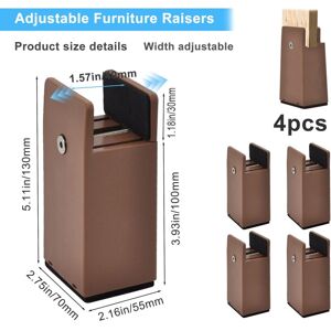 【Package】 You will receive 4 adjustable furniture lifter pads, suitable for most square furniture legs. 【Material】 The furniture lifter is made of hard plastic, rust-proof and moisture-proof, with a load capacity of up to 500 kg; there is rubber cotton on the plywood to prevent scratching the floor. 【Size】 The height of the furniture legs is 5 cm, suitable for furniture legs with a width of 10-37 mm. 【Design】 The bottom is made of felt, which can protect the floor, and is connected with high-density EVA material, which is wear-resistant and fits better; Built-in adjustment screws can adjust the left and right width. 【Usage】Furniture lift foot pads are very suitable for using bed legs, chair legs, table legs, sofa legs.