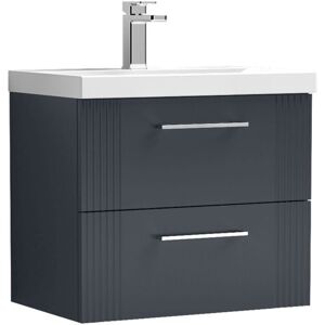 Model Number: DPF1493G The Nuie Deco Satin Soft Black 600mm Wall Hung 2 Drawer Vanity Unit and Curved Ceramic Basin combines elegance with functionality, making it an essential addition to any modern bathroom. Crafted from high-quality MDF with a stunning satin finish, this vanity unit not only enhances your bathroom's aesthetic but also provides ample storage space. The two soft-close drawers offer a seamless and quiet operation, allowing you to organise your bathroom essentials with ease. The accompanying 390mm curved ceramic basin features a single tap hole positioned centrally for convenient use, while the overflow system ensures peace of mind. This contemporary piece is designed to elevate your space, boasting a chic soft black colour that suits a variety of décor styles. The polished chrome handles add a touch of sophistication, perfectly complementing the overall design. With its wall-mounted configuration, this vanity unit creates a sense of openness, making your bathroom